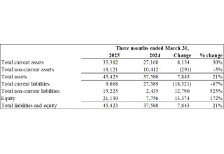 Selected Financial Information for the quarters ended March 31, 2025 and 2024: