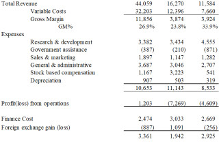 1 Non-IFRS Measure: Adjusted EBITDA is defined as profit/(loss) from operations , plus finance costs, stock based compensation and depreciation. Adjusted EBITDA does not have a standardized meaning under IFRS. Therefore it is unlikely to be comparable to similar measures presented by other issuers. Management believes that certain investors and analysts use adjusted EBITDA to measure the performance of the business and is an accepted measure of financial performance in our industry. It is not a measure of financial performance under IFRS, and may not be defined and calculated in the same manner by other companies and should not be considered in isolation or as an alternative to Income (loss) from operations.