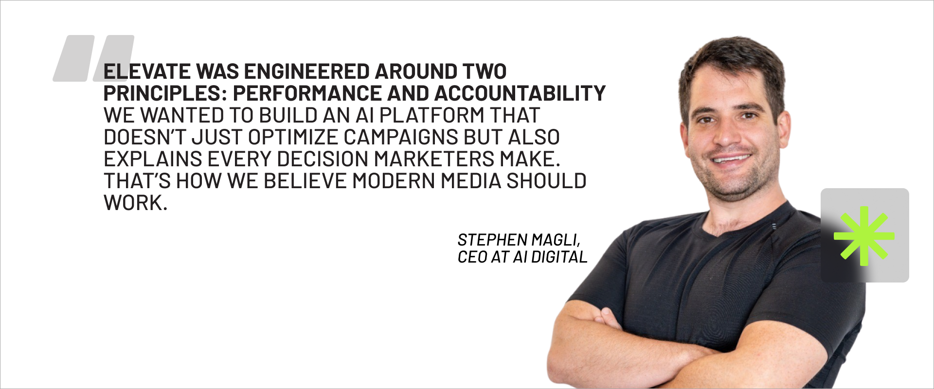 "Elevate was engineered around two principles: performance and accountability," says Stephen Magli, CEO at AI Digital. "We wanted to build an AI platform that doesn't just optimize campaigns but also explains every decision marketers make. That's how we believe modern media should work."