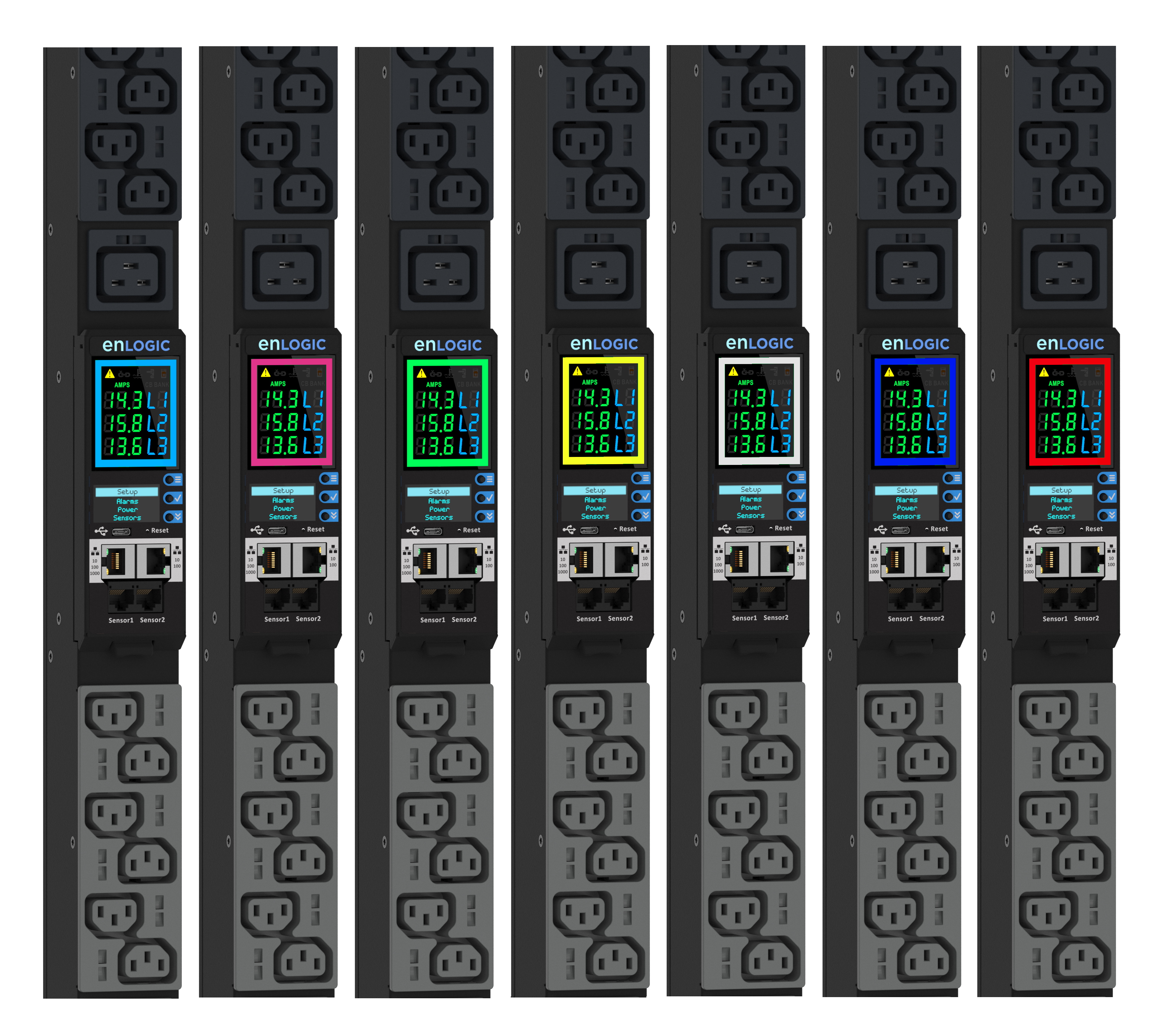 One of those features enables on-the-spot PDU customization: configurable LED border colors for power source identification. This patent-pending technology comes standard on all EN2.0 products and allows users to configure and change the LED border color to differentiate power sources in a rack. Enlogic is the only manufacturer to offer this technology with their high visibility Network Management Controller.