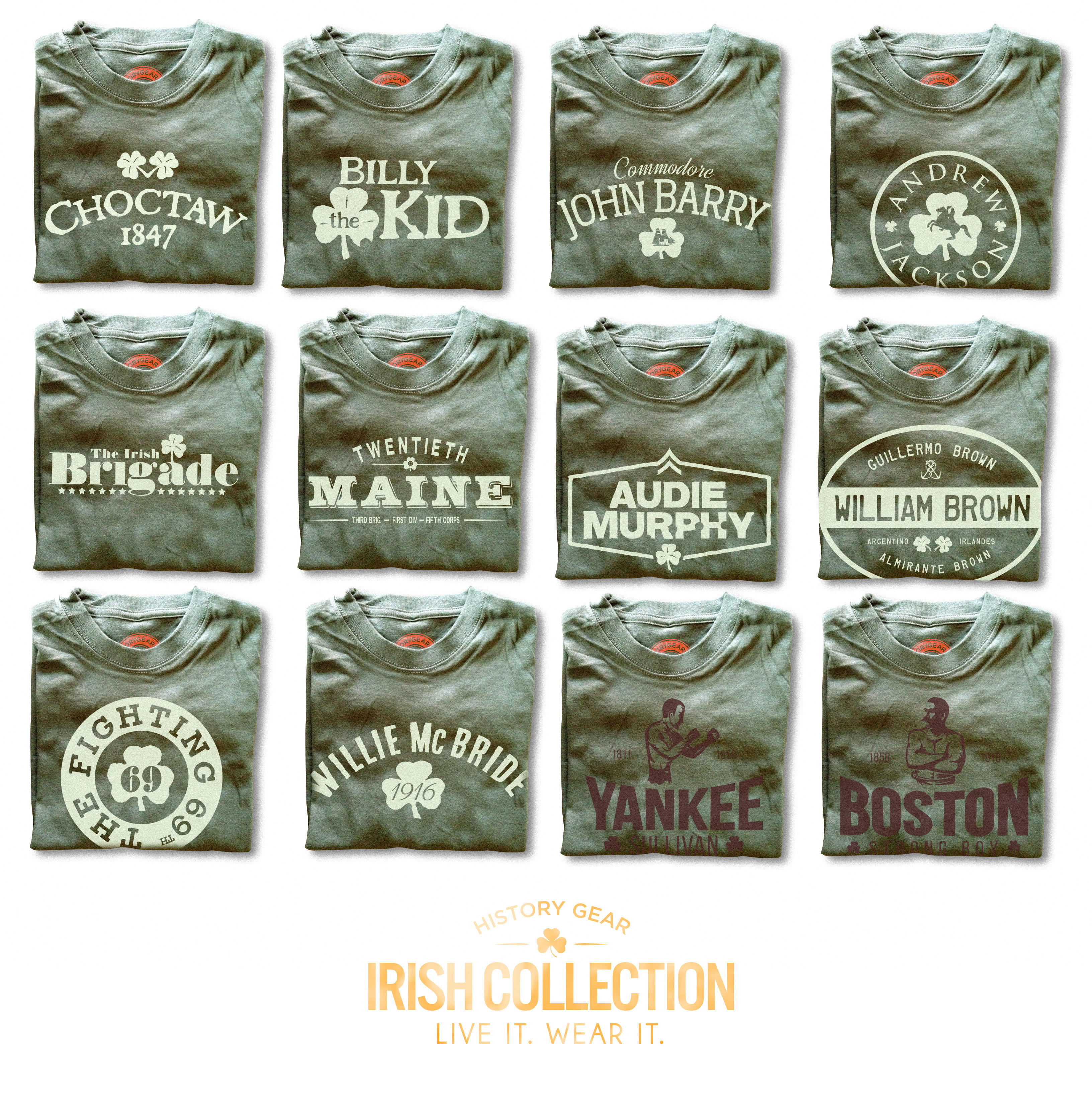 HistoryGear.com has recently launched its collection of Irish Art Prints, which pay homage to Saint Patrick and the Easter Rising of 1916. T-shirt designs include 'Choctaw 47' honoring their $170 famine donation in 1847 to WW2 legend Audie Murphy, the decorated son of sharecroppers. Others include: