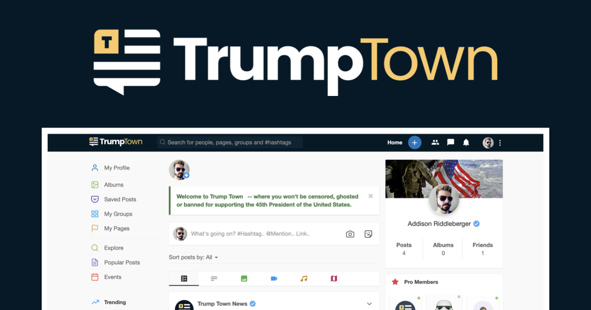 TrumpTown.com founder and North Carolina resident Addison Riddleberger is excited to give conservatives and Trump-supporters a new option in the social media space. The launch of the site comes hot off the heels of a situation involving of his own long-standing Facebook account being suddenly banned and his political pages being completely deleted.