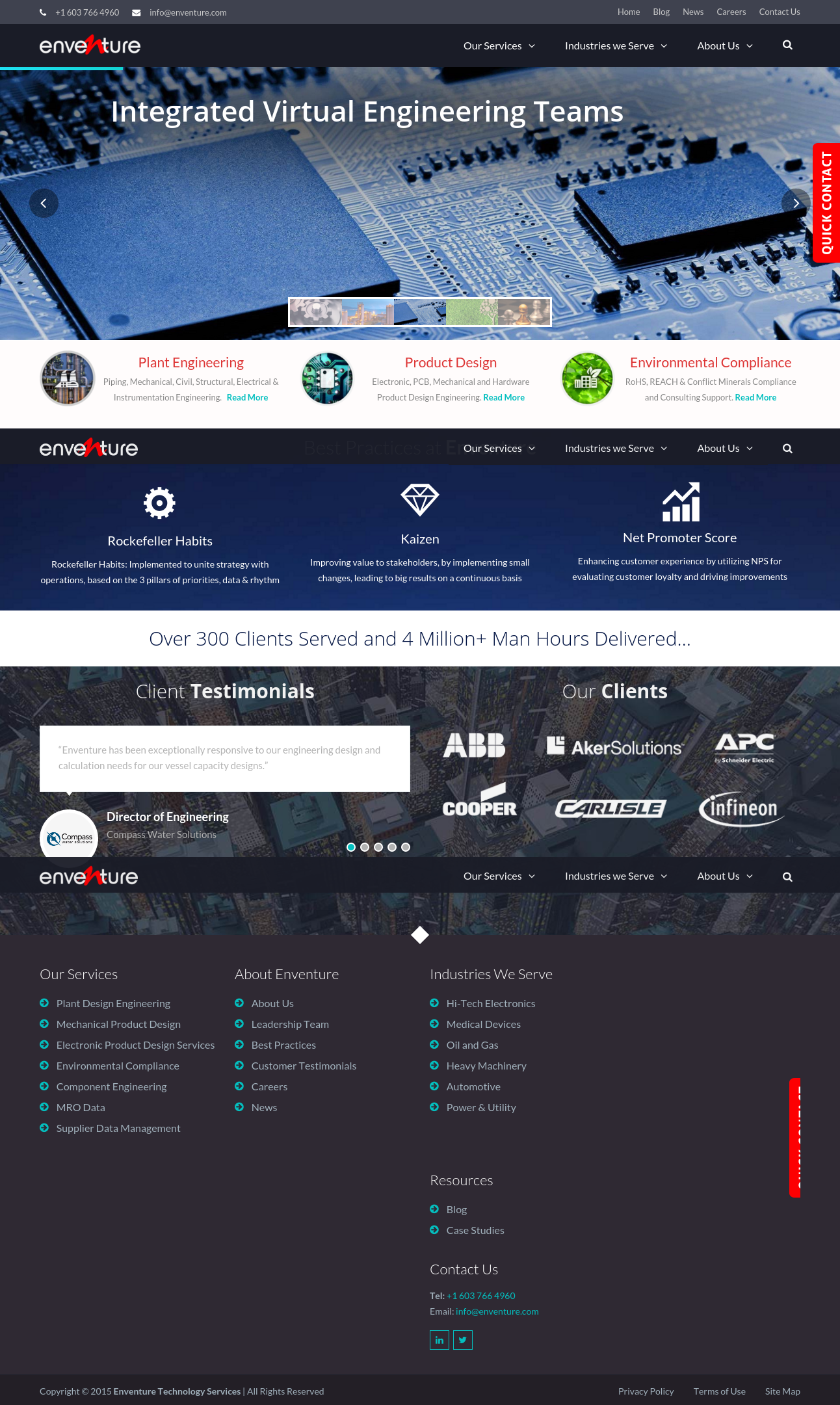 Over the past 17 years Enventure has successfully built strong offshore engineering partnerships with global companies ranging from a diverse group of industries. It has continuously strived to improve the gap in information flow between suppliers and buyers thus enabling consistent data handling. These crucial alliances with foreign clients makes electronic media an important facilitator in creating business awareness for Enventure. The corporate website forms an important link between the brand and its stakeholders for demonstrating various company related information, services portfolio, successful project execution and illustrious clientele.