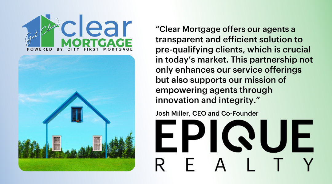 Online, August 8, 2024 (Newswire.com) - Epique Realty is excited to announce a groundbreaking partnership with Clear Mortgage powered by City First Mortgage Services, a leading name in transparent and innovative mortgage solutions. This collaboration represents a significant step forward in providing incomparable benefits and services to agents and clients alike.