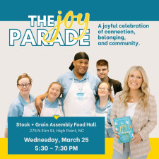 Wednesday | PUBLIC EVENT: Java Joy Coffee Experience* *Possible appearance by the Mayor of High Point and the Carolina Core. PUBLIC EVENT: Joy Parade** & Family Night **The Joy Exchange book signing and photos with the beloved Java Joy Joyristas. |