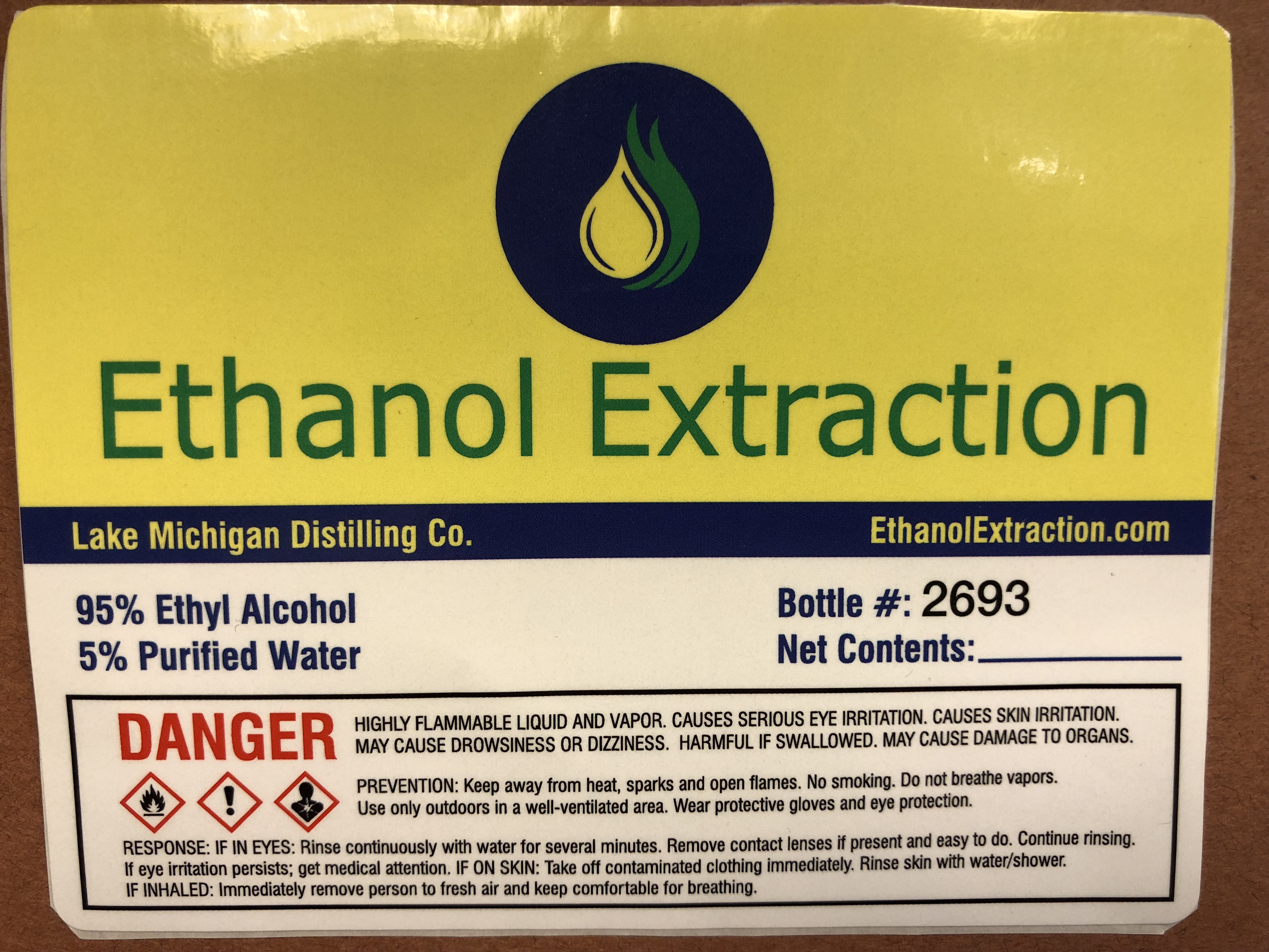 Ethanol Extraction’s Product was sold through the company’s website — www.ethanolextraction.com — and delivered by direct shipment throughout the U.S. The Product was sold in various size plastic bottles, ranging from 8 oz to 1 gallon, as well as 2.5 gallon and 5 gallon containers, containing labels such as depicted below.