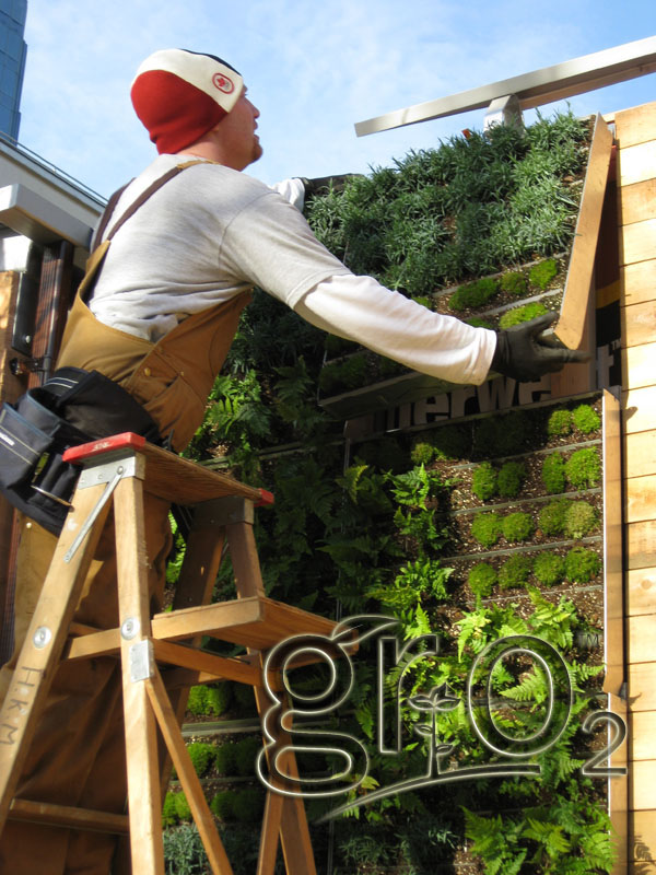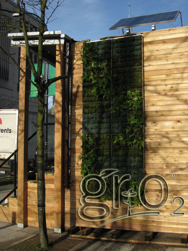 GRO2 has been working closely with the non-profit Environmental Youth Alliance and BC Housing, to plan five edible crop walls in the Downtown Eastside of Vancouver in Spring/Summer 2010. The first edible wall is due to be installed in Gastown's Blood Alley in the Spring, planted with seasonal fruits and vegetables, such as tomatoes, lettuce, chard, peppers, strawberries and various herbs and leafy greens. The residents of local co-operatives and shelters have been involved in the design, planning and planting process, and will ultimately be responsible for the installation, maintenance, and harvesting of the living wall.