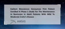 Exeliom Biosciences Announces First Patient Enrolled in Phase 1 Study for the Maintenance in Remission in Adult Patients With Mild to Moderate Crohn's Disease