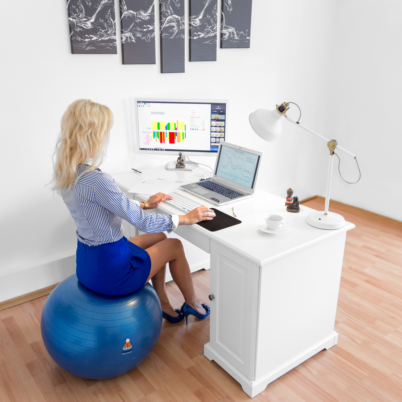 When we were still searching for ideas when the brand Lazy Monk was not yet born, my wife and I were expecting our first child. She had not given up on her job, so the entire period was a bit difficult. She used to complain about terrible back pains. Desperate to figure out a solution, I read about the benefits the exercise ball has in cases of this kind! That's when I knew that this was a product worth investing in. Of course, the exercise ball has other advantages, but one as big as this one could certainly not be overlooked! So here is to all future mothers, may you have a happy pregnancy.