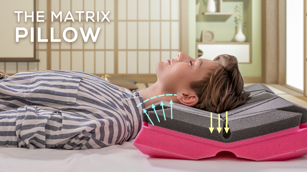The Matrix Pillow is the world’s first pillow designed with patented structure displacement. It’s divided into 14 individual cubes of memory foam padding that move independently of one another. This unique structure makes it self-adjustable, contouring to any sleep position to keep the head and neck supported and helping to align the cervical spine in a natural shape. It prevents neck, head, and back pain, alleviates snoring and provides a comfortable platform for a perfect night of sleep.