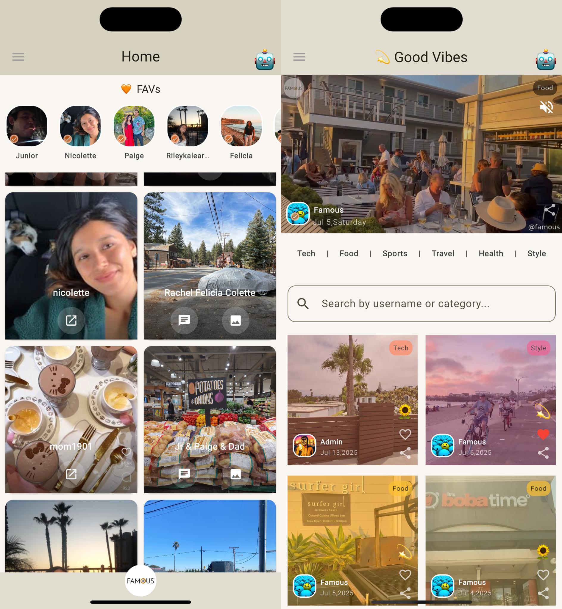 Unlike platforms dominated by trends and filters, Famous™ emphasizes real moments and authentic content. At its heart is Buenas Vibras (https://famoustm.com/buenasvibras), a growing library of user-generated short videos organized by categories like tech, food, travel, and more. Users can upload videos up to 60 seconds long-sharing everything from favorite coffee spots and scenic sunsets to simple, everyday experiences.