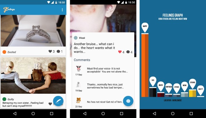 Feelings, a unique social media application about emotions has been announced. Already available on android via the Google Play store (or visit www.thefeelingsapp.com) to check out the app), this innovative app is like an anonymous ‘Instagram’ for expressing emotions.
