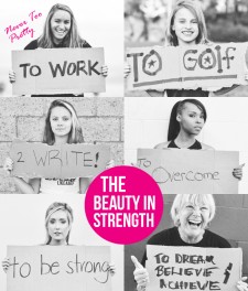 Currently this movement is in full effect with an Instagram project. Girls and women are posting a black and white photo of themselves holding a cardboard sign on which they have written what they are Never Too Pretty to do. They use hash tags #nevertoopretty #tooprettymovement and #thebeautyinstrength and explain what it means to them.