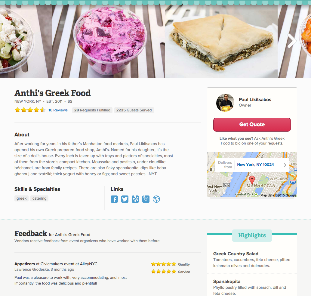 Fiestah’s online platform saves event organizers days of researching and contacting vendors to get quotes, while giving vendors an easy way to market themselves to new and existing clients. Vendors and organizers are able to communicate, negotiate, and transact within the platform together.