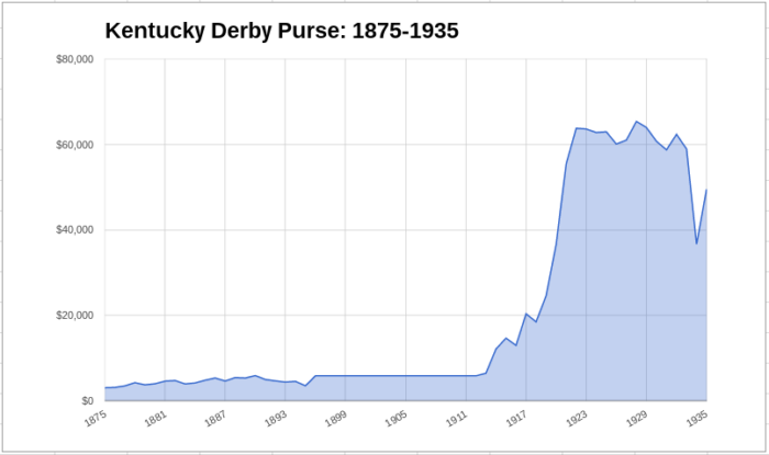 Currently, the Derby purse sits at around $2 million and similar to 1929, the prize pool has been flat for many years following a huge surge in the early 2000s. And, just like in 1929, the U.S economy, according to Churchill, has been witnessing a period of unsound economic growth brought by Federal Reserve actions of quantitative easing (printing money).