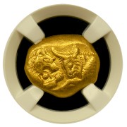 This remarkable gold coin dates back over 2,500 years ago to approximately 560 B.C. and has been preserved in near-mint condition.