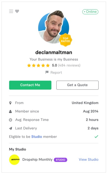 Today, Declan offers a wide variety of services through his Fiverr Pro profile. From project management for digital web services to designing websites, Declan has built a full-service digital agency that he services through Fiverr. To date, Declan has generated over half a million dollars in sales and is now one of the top sellers on Fiverr.