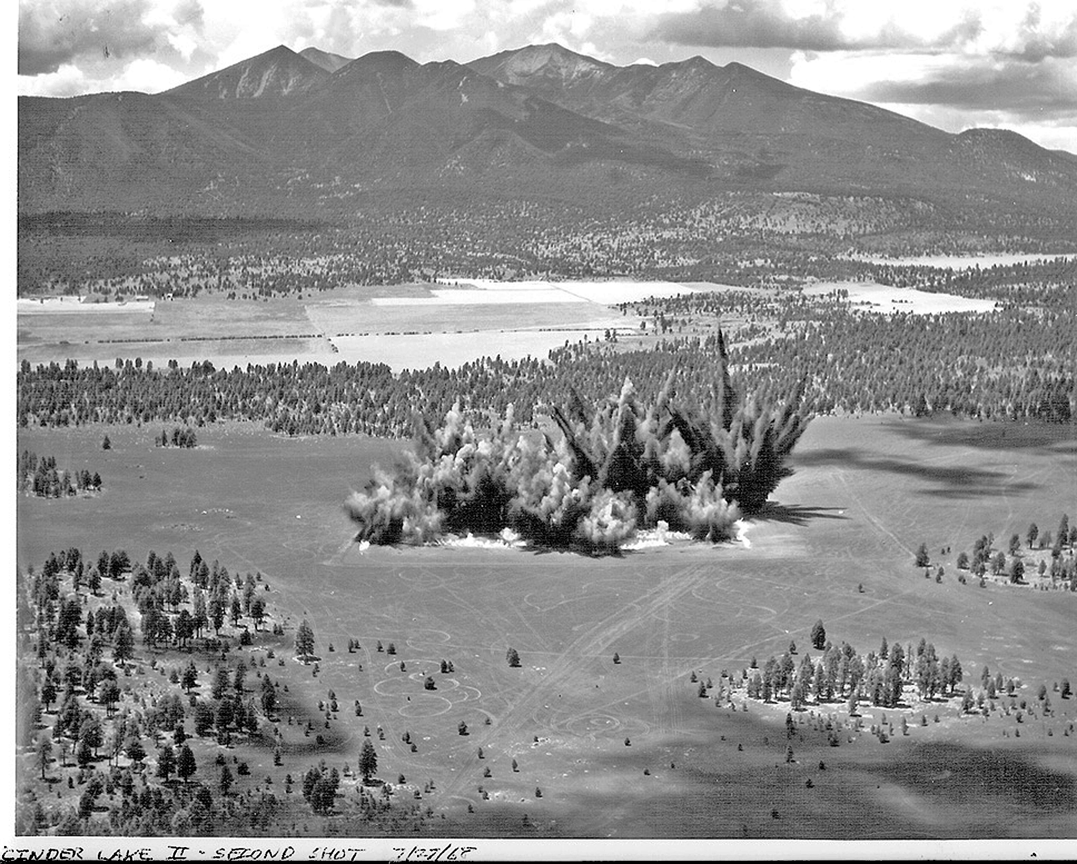 - Using explosives, scientists created a simulated lunar surface in the cinder field near Sunset Crater, complete with a network of craters modeled after authentic Moon craters for training astronauts and testing several lunar rover vehicle simulators (moon buggies) in the surrounding volcanic features.