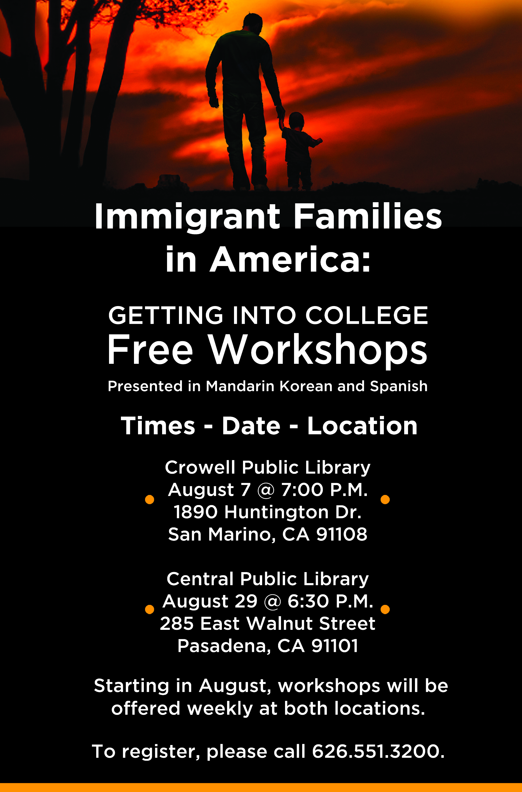 Tags: anti-immigrant sentiment, college admissions help, college counseling, college prep for immigrant students, crowell public library, immigrant families, immigrant students in America, pasadena central public library