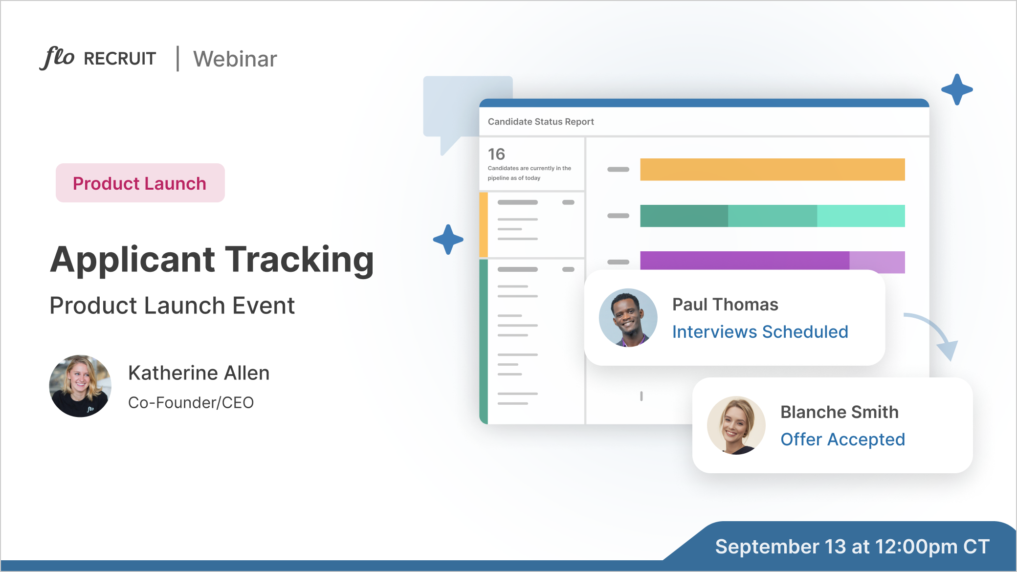 Flo Recruit Applicant tracking will be made available on Sept. 13, 2022, following the Flo Recruit, Applicant Tracking Launch Webinar, 12 p.m. CT, 9/13/22. You can view more information at https://start.florecruit.com/applicant-tracking-for-law-firms
