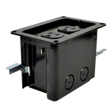 Floor boxes are designed for use in wood floor construction and are compatible with multiple floor substrate materials, including ceramic, hardwood, laminate, or carpet. Each floor box is UL® listed and features tamper-resistant duplex or decorative style devices, extra deep wiring capacity, and cover gaskets to provide a scrub watertight seal.