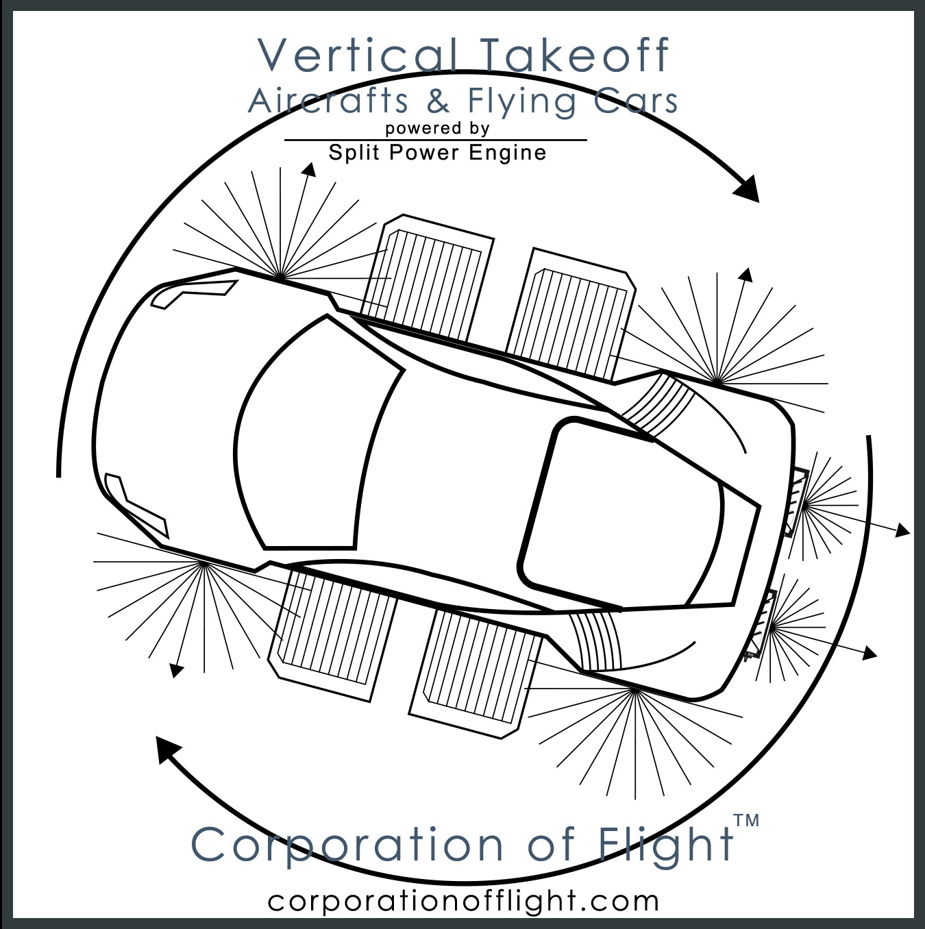 Corporation of Flight Inc. is primarily a development and licensing corporation focused on Vertical Takeoff and Landing aircraft ranging from one person to 50-plus passenger aircraft for arrivals and departures in any location.
