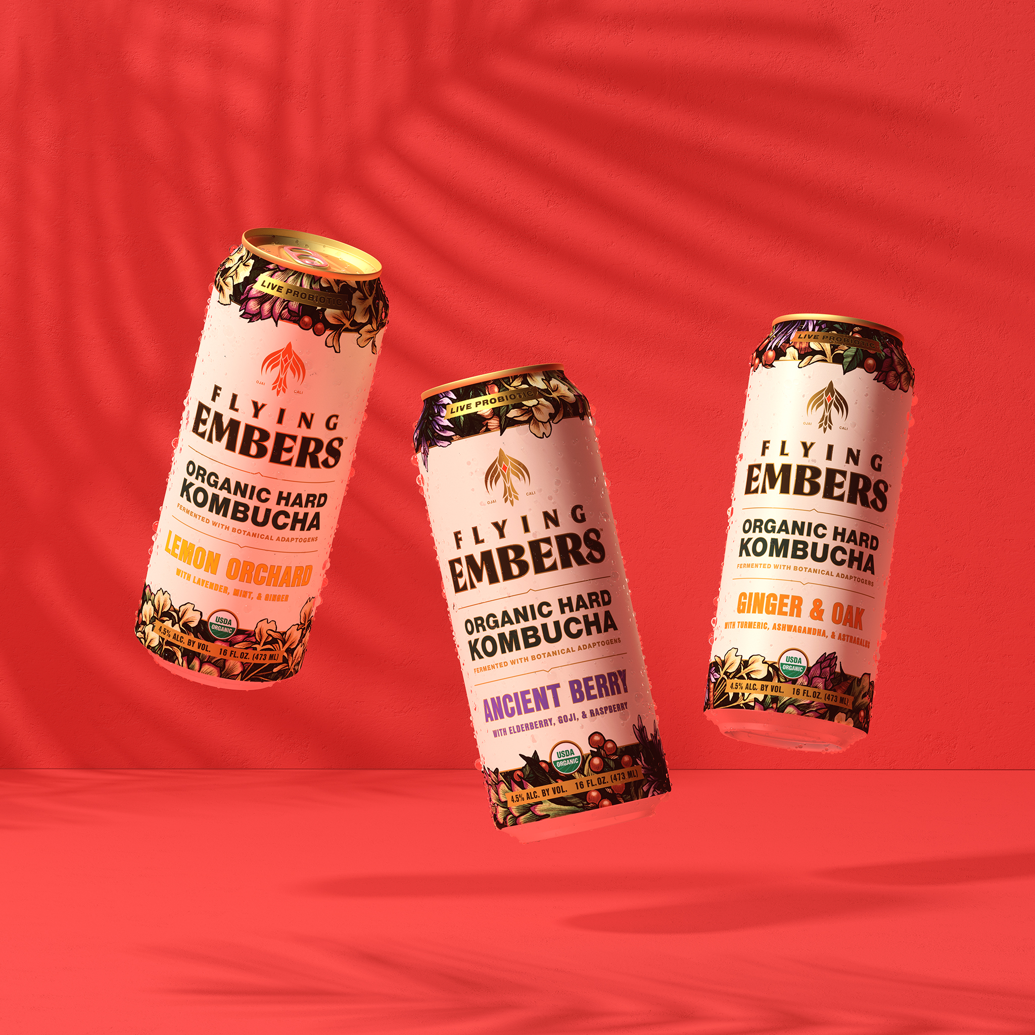 Flying Embers Hard Kombucha uses the ancient alchemy of fermentation to create a better-for-you alcohol sparkling tea made with an adaptogen root blend. It is organic, gluten-free and zero sugar. Flying Embers’ current line of three flavors includes Ancient Berry (with elderberry, goji, and raspberry), Ginger & Oak, and Lemon Orchard (with lavender, mint, and ginger).