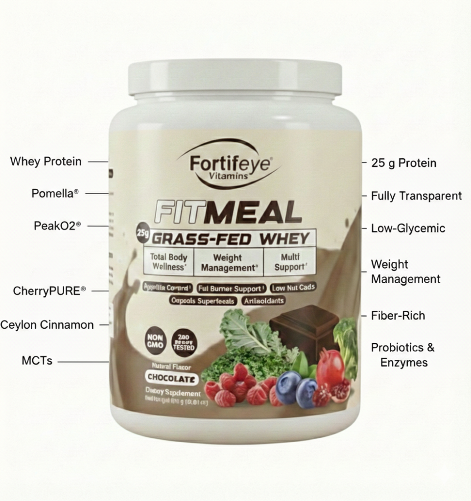 Fortifeye Fit Meal includes a clinical-strength thermo‑metabolic blend: