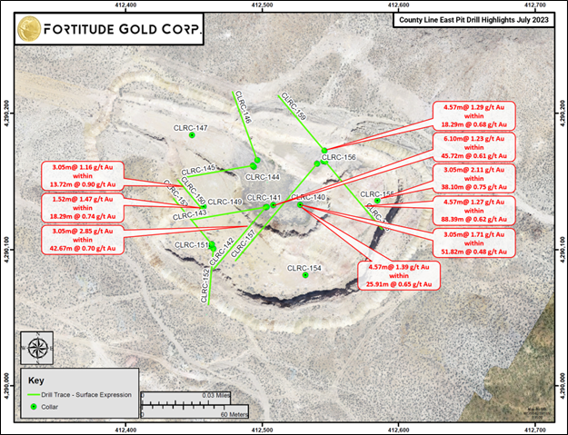 "We are excited to see thick intervals of gold mineralization continue along strike near surface at both the County Line and East Zone targets," stated Mr. Allan Turner, Vice President of Exploration for Fortitude Gold. "We are currently updating our resource model to incorporate these latest drill results and look forward to additional drill programs in the second half of 2023 to further delineate both areas of mineralization."