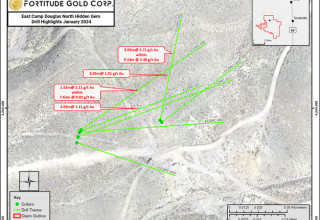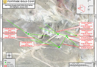 COLORADO SPRINGS, CO, January 22, 2024 (Newswire.com) - Fortitude Gold Corp. (OTCQB:FTCO) (the "Company") announced multiple wide, high-grade surface and near surface gold drill intercepts at its East Camp Douglas North target. Intercepts include 3.05 meters grading 6.81 grams per tonne (g/t) gold within 27.43 meters grading 1.49 g/t gold from surface, 7.62 meters grading 1.96 g/t gold within 12.19 meters grading 1.45 g/t gold, and 3.05 meters grading 5.71 g/t gold within 9.14 meters grading 2.40 g/t gold. Fortitude Gold is a gold producer, developer, and explorer with operations in Nevada, U.S.A. offering investors exposure to both gold production and dividend yield.
