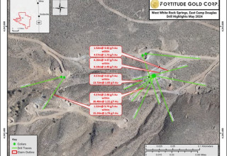 COLORADO SPRINGS, CO, May 22, 2024 (Newswire.com) - Fortitude Gold Corp. (OTCQB:FTCO) (the "Company") announced continued multiple wide, high-grade oxide gold drill intercepts from its West White Rock Springs target located on the northern portion of the East Camp Douglas property. Intercepts include 6.10 meters grading 3.47 grams per tonne (g/t) gold within 9.14 meters grading 2.45 g/t gold, 4.57 meters grading 4.62 g/t gold within 13.72 meters grading 1.83 g/t gold, and 1.52 meters grading 9.79 g/t gold within 15.24 meters grading 1.74 g/t gold. Fortitude Gold is a gold producer, developer, and explorer with operations in Nevada, U.S.A. offering investors exposure to both gold production and dividend yield.