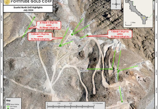 COLORADO SPRINGS, CO, July 30, 2024 (Newswire.com) - Fortitude Gold Corp. (OTCQB:FTCO) (the "Company") announced multiple oxide gold drill intercepts at and near surface from the Scarlet North target along the Company's Isabella Pearl trend. The Scarlet North target is located just 700 meters northwest of the Isabella Pearl heap leach and process facility. Intercepts include 9.14 meters grading 2.33 grams per tonne (g/t) gold within 16.76 meters grading 1.58 g/t gold. The Company also released multiple rock chip surface samples from a new, undrilled target in the Scarlet North area, the highest assaying 2.24 g/t gold. Fortitude Gold is a gold producer, developer, and explorer with operations in Nevada, U.S.A. offering investors exposure to both gold production and dividend yield.