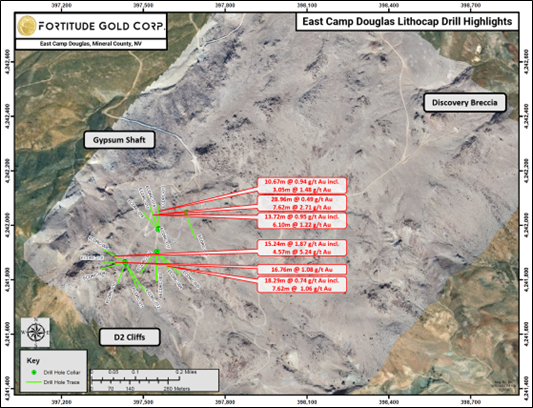 Fortitude Gold Expands East Camp Douglas Mineralized Lithocap Intercepting 4.57 Meters Grading 5.24 G/t Gold Within 15.24 Meters Grading 1.87 G/t Gold