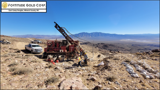 Fortitude Gold owns 100% interest in the East Camp Douglas gold property located in Nevada's Walker Lane Mineral Belt. The property covers an area of 5,571 acres consisting of 289 unpatented claims, 16 patented claims and additional fee lands in Mineral County, Nevada. Precious metal epithermal mineralization at East Camp Douglas occurs as both widespread high sulfidation alteration areas and low sulfidation veins. Modern exploration by several mining and exploration companies has established modest gold resource potential in at least five separate areas on the property, with over 3,000 meters of drill core and a large exploration database. The Company believes this large property has numerous untested gold targets with open-pit heap leach potential warranting an on-going extensive exploration program.
