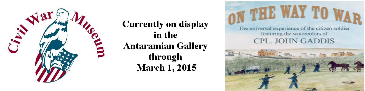On the Way to War is free and open to the public. Nominal admission is required for the Civil War Museum's main exhibit, The Fiery Trial, and 360-degree movie, Seeing the Elephant.