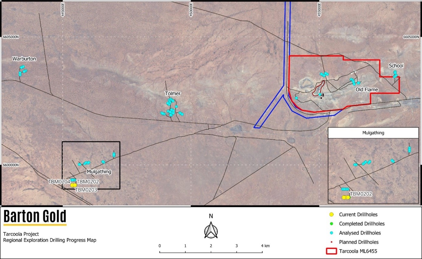 Barton Gold Holdings Limited (ASX:BGD)(FRA:BGD3)(OTCQB:BGDFF) (Barton or Company) is pleased to confirm that its drilling program testing multiple targets near the Tarcoola Gold Project's (Tarcoola) Perseverance open pit mine is now complete, with 9,052m RC drilling completed across 44 days' drilling. 2