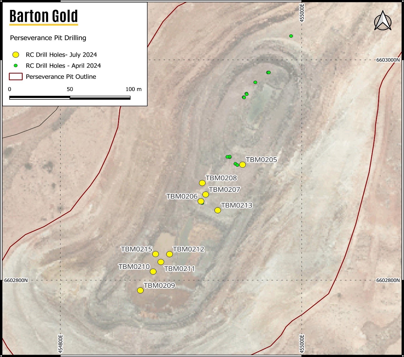Following the recent new JORC (2012) Mineral Resource Estimate (MRE) totalling ~20koz Au @ ~2 g/t Au in the Perseverance pit floor, Barton has also completed another 10 holes totalling 882m RC drilling targeting other shallow open pit mineralisation with potential for conversion into an expanded open pit MRE.