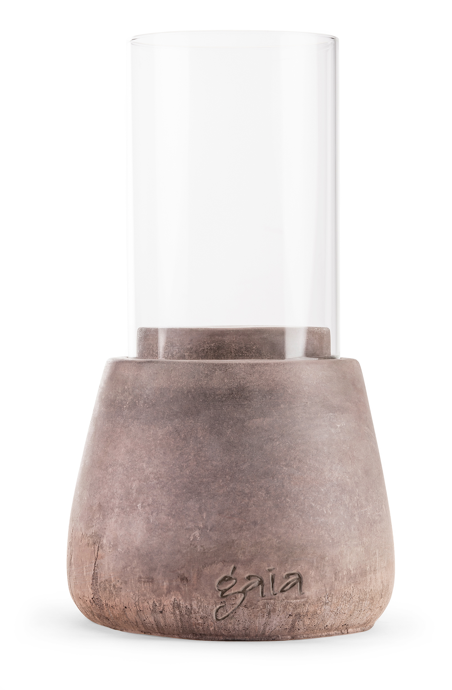 Gaia released photos of the candle holder this week. Unlike the brightly hued pots and vases in Gaia’s catalog of goods, the hurricane candle is a muted grey tone.