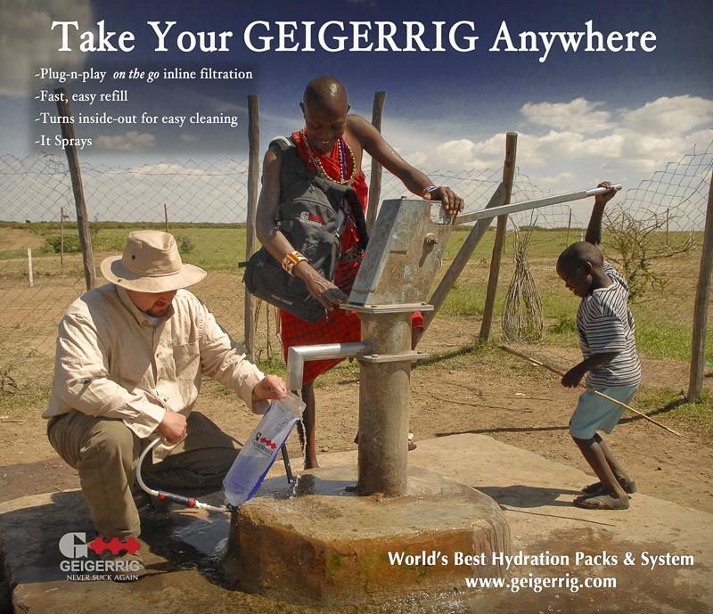 Online, March 29, 2011 (Newswire.com) - Geigerrig Hydration Packs are taking the market by storm. This pressurized hydration system, reversible bladder and in-line filtration is dramatically expanding the hydration pack market to include team sports, emergency preparedness and more. As featured in Adventure World Magazine, Editor's Choice...