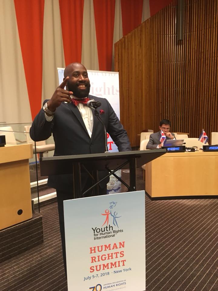 Introduced to United for Human Rights in 2015, King, the grandson of blues legend BB King, incorporated its human rights education into his nonprofit, The Gentlemen’s Course, which educates youth age 12 to 18 on attire, etiquette and human rights and raises awareness of human trafficking.