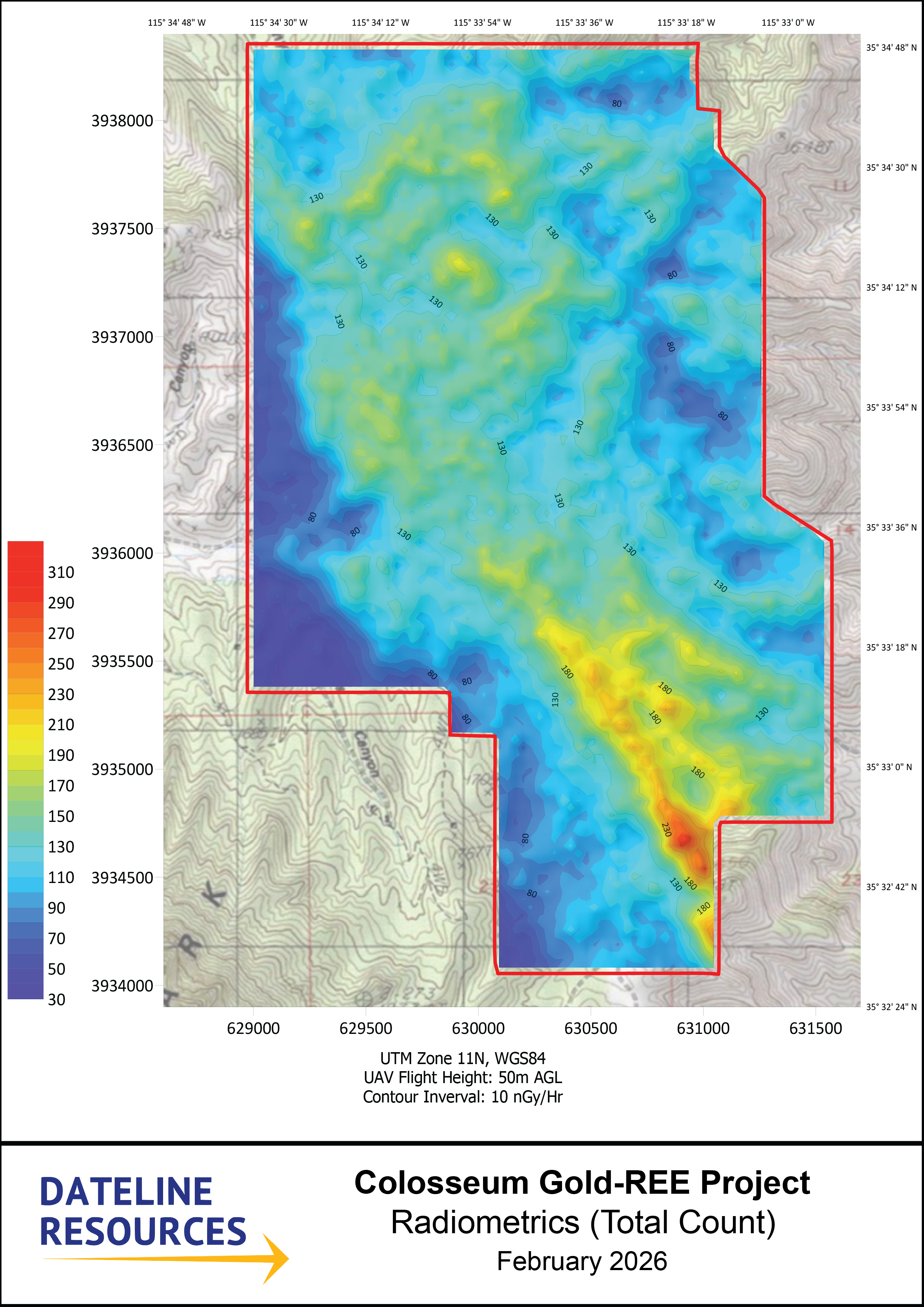 SAN BERNARDINO, Calif., February 9, 2026 (Newswire.com) - Dateline Resources Limited (ASX:DTR)(OTCQB:DTREF)(FSE:YE1) is pleased to announce the completion of infill gravity, magnetic and radiometric surveys at its 100%-owned Colosseum Gold and Rare Earth Project in California, USA. This follows the completion of an induced polarisation (IP) survey across the project in December 2025.