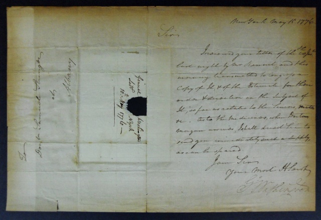 "Sir, I received your Letter of the 10 Inst [ant] last night by Mr. Bennet, and this morning transmitted to Congress a Copy of it & of the Estimate for their order & direction on the subject of it, so far as relates to the Seniors, mates &c. As to the Medicines, when Doctor Morgan arrives, I shall direct him to send you immediately such a Supply as can be spared. I am Sir, your Most H[umble] Servant. G Washington"