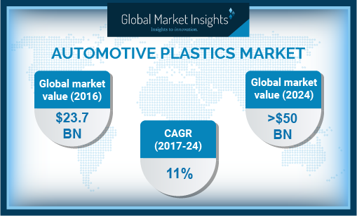 Browse key industry insights spread across 310 pages with 345 market data tables & 53 figures & charts from the report, “Automotive Plastics Market Size By Product (Polyurethane, PVC, Polyethylene, Polypropylene, ABS, Polycarbonate, Polyamide, PMMA), By Application (Electrical Components, Power Train, Under the Hood, Chassis, Interior & Exterior Furnishings), Industry Analysis Report, Regional Outlook (U.S., Canada, Mexico, Germany, UK, France, Italy, Russia, Poland, Spain, China, India, Japan, South Korea, Indonesia, Thailand, Brazil, South Africa), Application Potential, Price Trends, Competitive Market Share & Forecast, 2017 - 2024” in detail along with the table of contents: