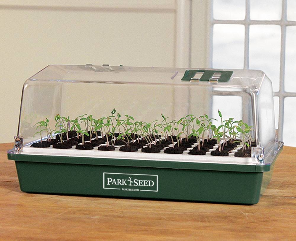 Park's Ultimate Vegetable Garden Collection contains everything needed to start seeds indoors. The sturdy Park Bio-Dome seed starter creates the ideal environment for seeds to sprout. The cover keeps moisture in and the vents promote airflow to the seedlings.