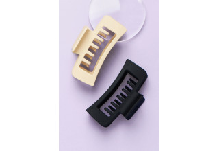The Double Claw Clip Duo features a double row of teeth design for holding more hair with a firm grip and no sliding out, making it perfect for all hair types and ensuring less tension and no breakage. With a size of 4.75” long by 2” wide and with a velvet-like finish, it ensures a gentle and smooth fitting and is available in black or tan.