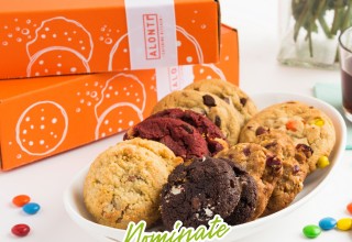 Choose one of six flavors or get a little of everything, from the classic chocolate chunk to the decadent s’mores or our crowd favorite: coconut pecan. Explore all six flavors, including M&M’s, orange cranberry oatmeal, and red velvet. Alonti’s got a tasty treat for everyone. And don’t worry, ordering is just as easy. Order online at order.alonti.com or give one of our local kitchens a call. Pick the flavor(s), add on special occasion packaging with our personalized stickers and balloons, and we’ll do the rest.