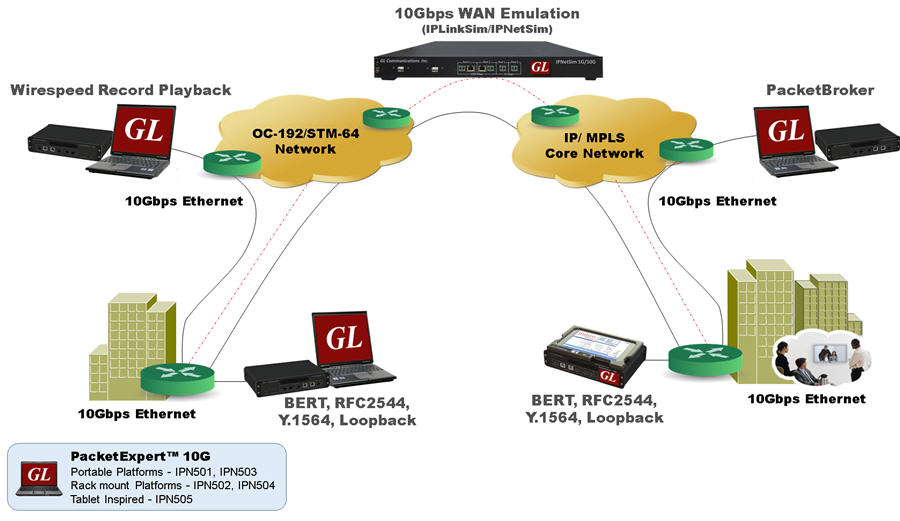 GL's IPLinkSim™ and IPNetSim™ products support WAN emulation. These products are capable of emulating a WAN link, and introducing typical WAN impairments like Bandwidth Throttling, Latency, Jitter, Packet Loss, Packet Reordering, Packet Duplication, Packet Corruption, Congestion emulation etc. Both the products act as a transparent Ethernet bridge and can be connected between two LANs easily emulating a WAN link in the lab.”