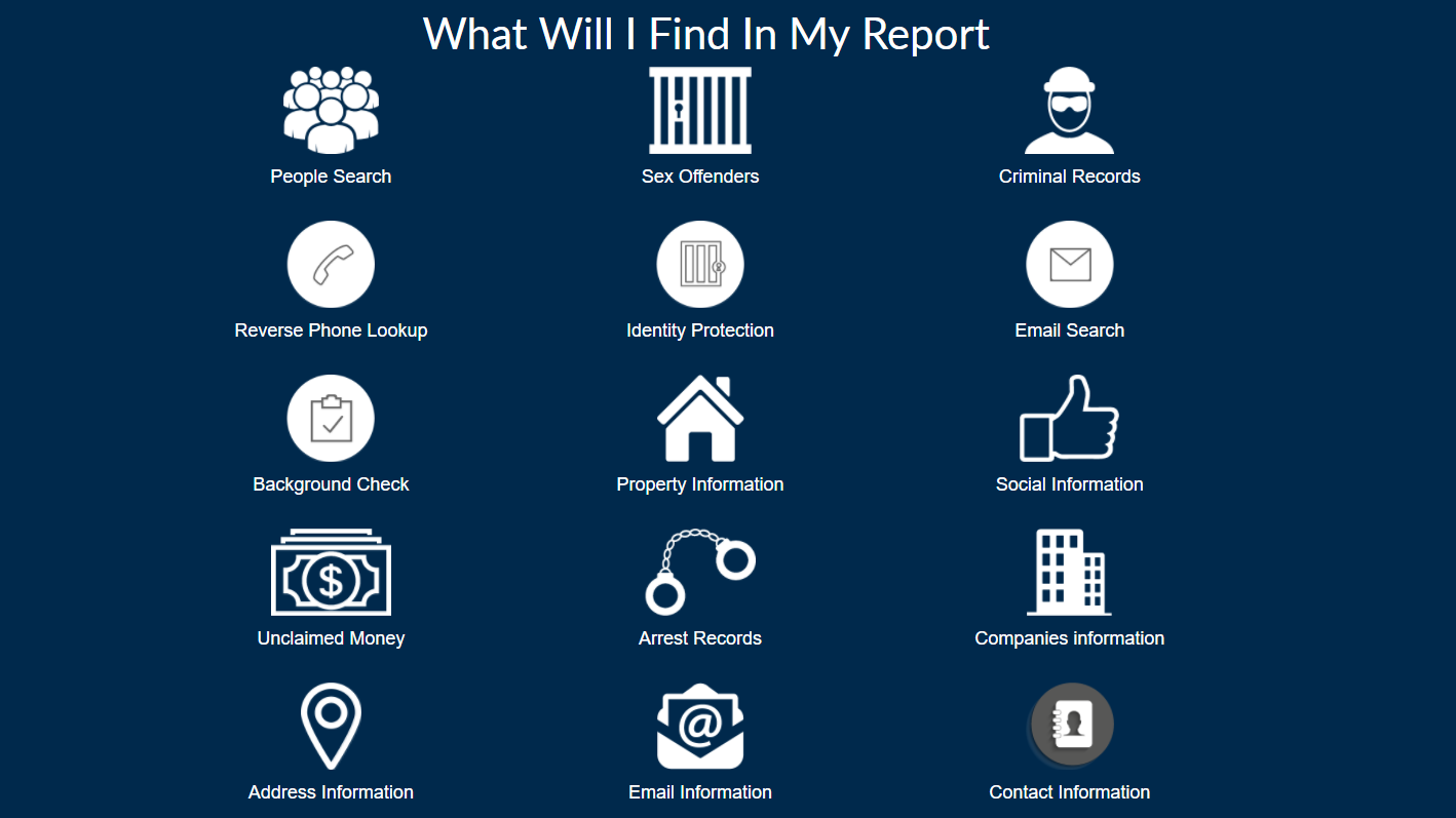 Tags: arrest records, Background Check, companies information, criminal records, education, People search, phone number search, public records, reverse address search, reverse phone lookup, sex offender search, unclaimed money