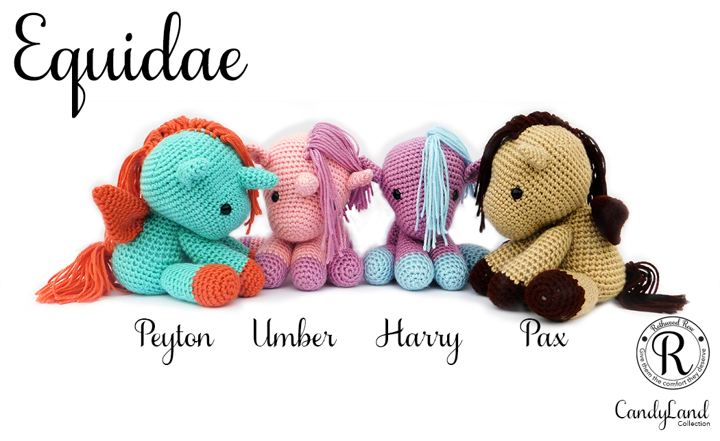Equidae includes four new plush toys to the already adorable Candy Land collection from the original opening on Etsy. Equidae includes Harry Horse, a delightful little pony who is ready to be a child's new hug partner. Also included in the Equidae are Pax Pegasus, Peyton Pegacorn, and Umber Unicorn. These three are just as ready to be a child's new best friend as they are intended to be sold as not gender specific creatures. This is because of the need (and current lack of) toys that do not specify gender. Children often need to just be children. These magical horses allow them to do just that. Pax, Peyton, and Umber remove the need for gender roles. Magical creatures don't have to have a gender, and they are named with unisex names for that reason. Pax Pegasus is a sweet and loving adventurer that is so ready to be a child's ticket to a new horizon of imagination. Peyton Pegacorn is an adventurous warrior, standing tall and flying into a child's next playtime. Umber Unicorn is a shy sweetling who wants to be there for children and help them accomplish their dreams. They all love to be hugged, are great listeners and have huge hearts ready to share their adoration with a child.