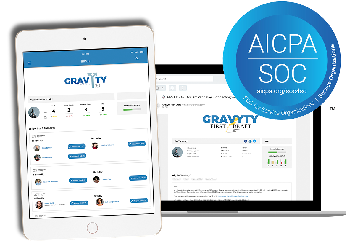 Gravyty is committed to reducing risk for all customers, regardless of size. This mission includes the way we develop our SaaS and AI-based solutions, as well as the ways in which we secure our company and our customer’s data. Gravyty’s SOC 2 compliance demonstrates our commitment to raising expectations for technology in the nonprofit sector delivering first-class solutions that produce tangible results as an enterprise-ready solution.